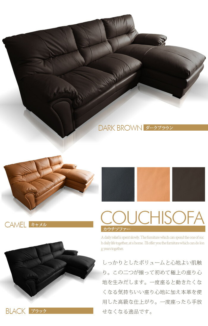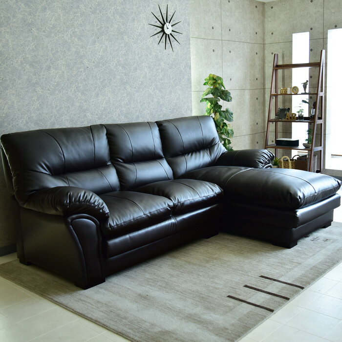 【送料無料】カウチソファ 3P ロングソファ 革張り ブラック ダークブラウン キャメル フロアソファー コーナー リビングソファ リビングソファー 3人掛け カウチ シェーズロング 家具通販 大川市
